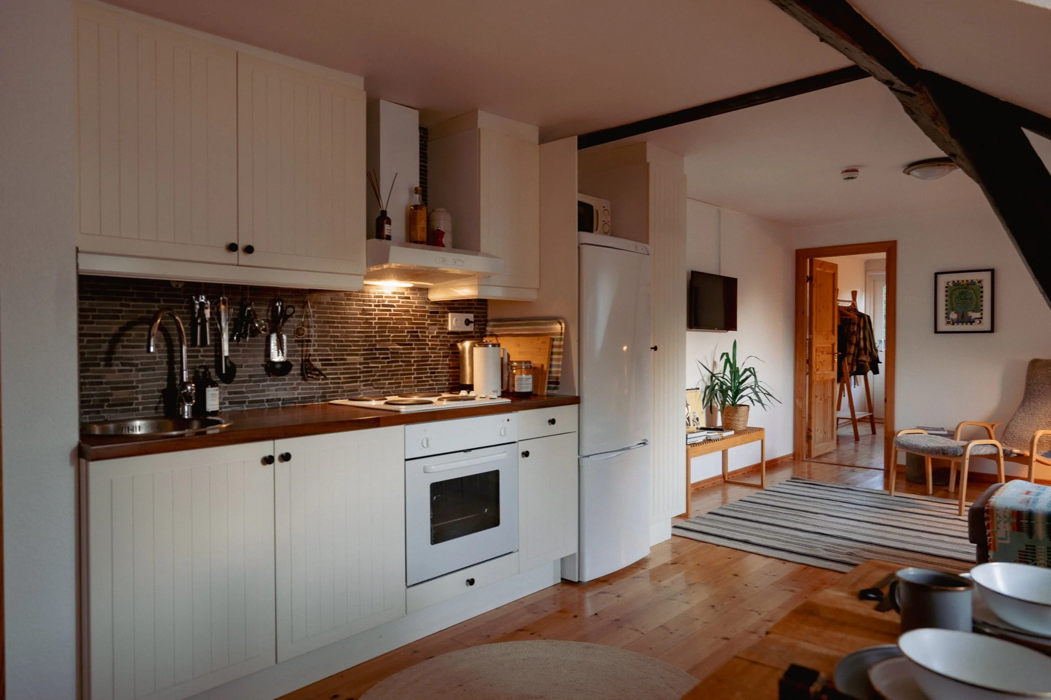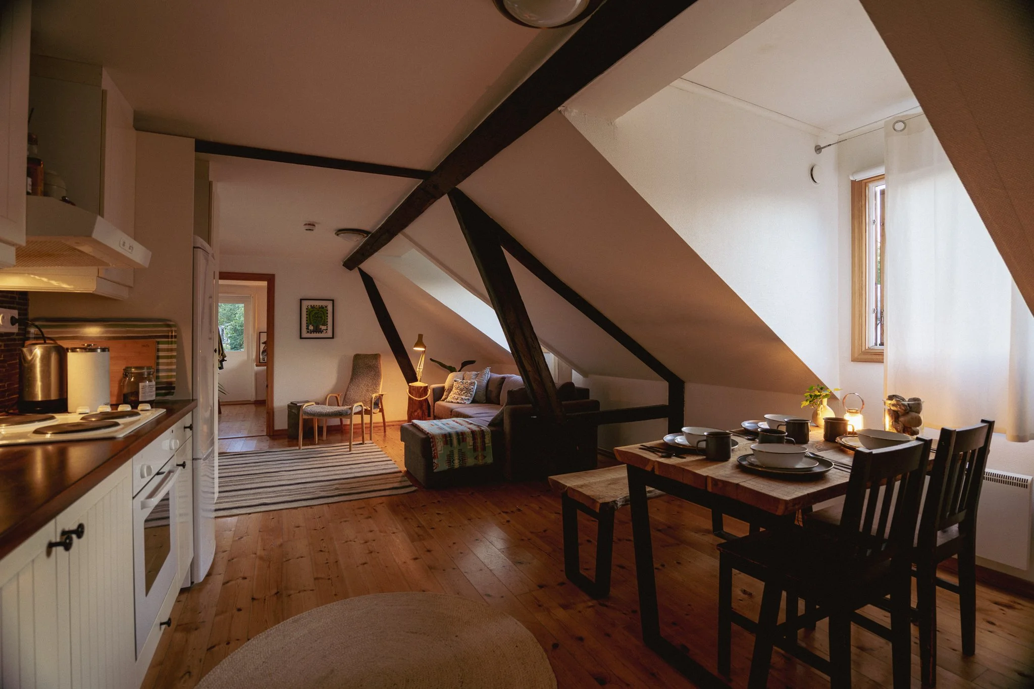 Apartment no 4 is facing west with a panoramic view over the hills leading up to Ales stenar. Enjoy beautiful evenings soaked in sunlight and watch the Österlen sun set over green hills!