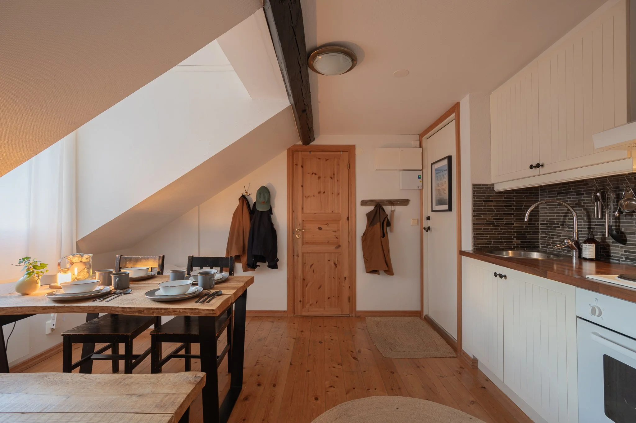 All apartments are furnished with carefully selected, high-quality products from brands like Pendleton, Stanley, L:A Bruket, and Barebones — all available in our Vanlife Adventure Shop on the ground floor. You’ll also find brands like Carhartt, Deus Ex Machina, Filson, Houdini, Klättermusen, Snow Peak, and YETI. As an overnight guest, you always receive 10% off in the shop.